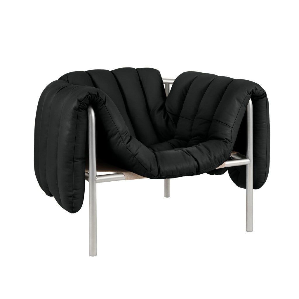 Puffy Lounge Chair Black Leather / Stainless - Default Title