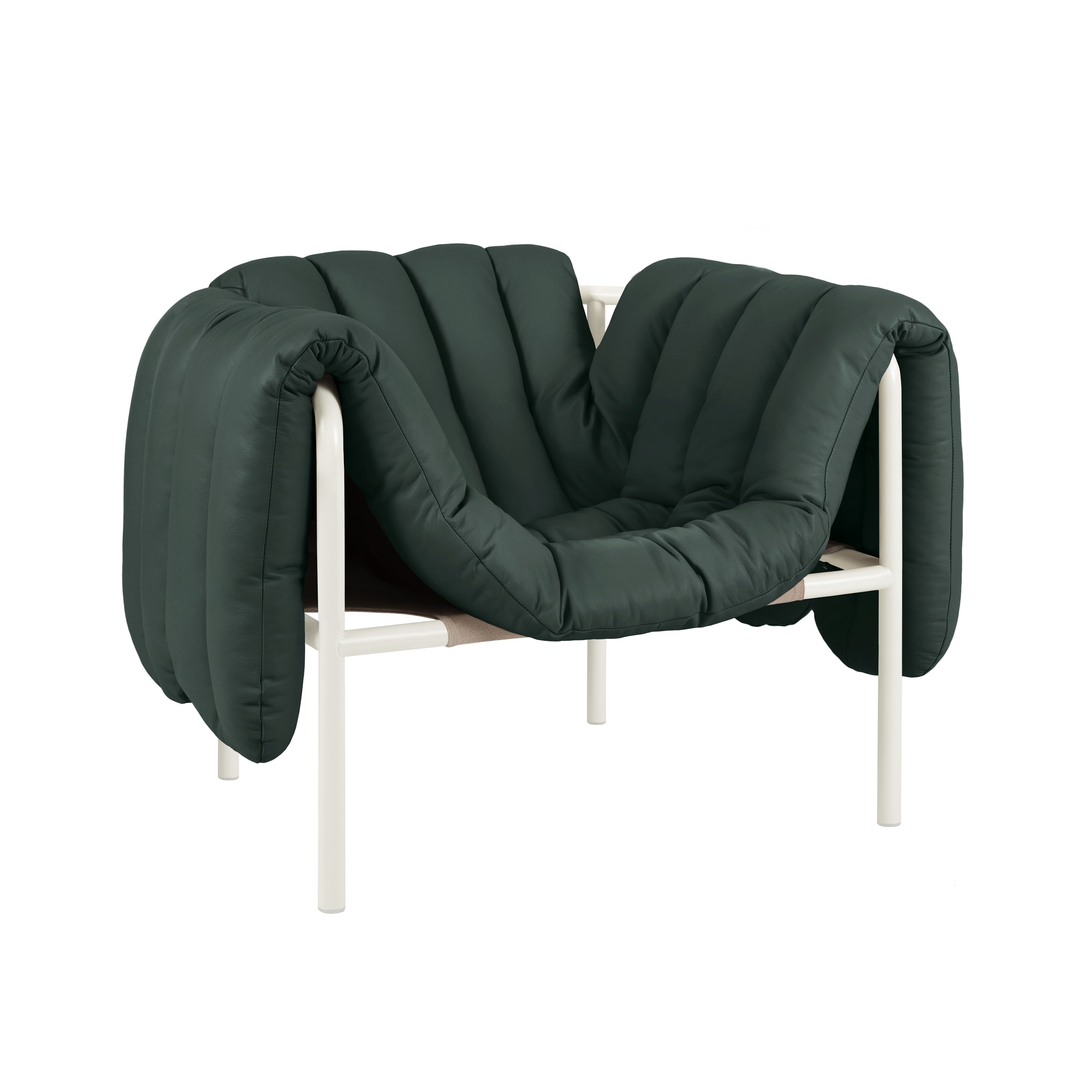 Puffy Lounge Chair Dark Green Leather / Cream - Default Title